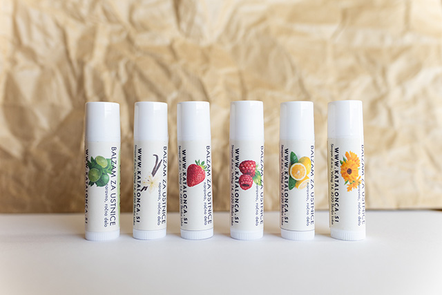 Sestava: čebelji vosek, bio karitejevo maslo, kakavovo maslo, bio jojobino olje, olje mareličnih jedrc, aroma maline, vitamin E